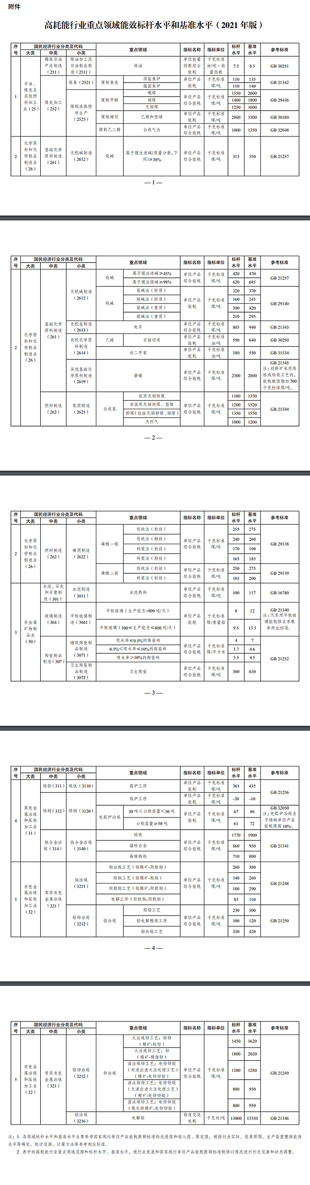 附件:高耗能行業(yè)重點領(lǐng)域能效標桿水平和基準水平(2021年版)