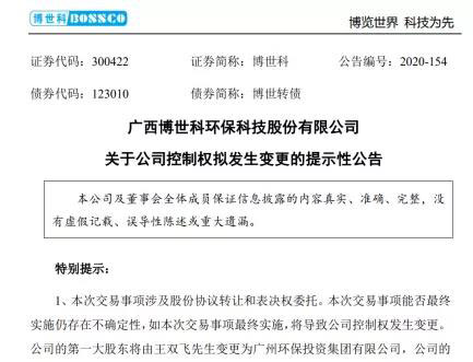 這次股份轉(zhuǎn)讓完成后,廣州環(huán)投集團(tuán)成為博世科的第一大股東,廣州市人民政府成為公司的實(shí)際控制人,博世科正式變身國企。