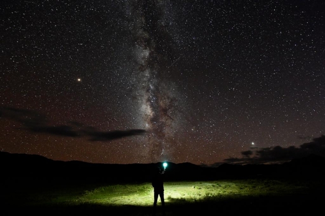 西藏阿里境內拍攝的銀河(2018年9月12日攝)。 新華社記者 普布扎西 攝