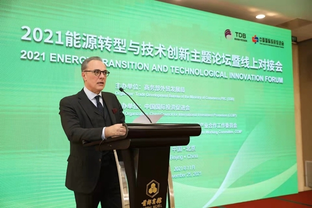 2021年11月25日下午,由商務(wù)部外貿(mào)發(fā)展局主辦、中國(guó)國(guó)際投資促進(jìn)會(huì)承辦、中國(guó)國(guó)際投資促進(jìn)會(huì)能源產(chǎn)業(yè)合作工作委員會(huì)協(xié)辦的“2021年能源轉(zhuǎn)型與技術(shù)創(chuàng)新主題論壇暨線上對(duì)接會(huì)”成功舉辦。本次論壇以“能源轉(zhuǎn)型與技術(shù)創(chuàng)新”為主題,聚焦“雙碳目標(biāo)”背景下的能源轉(zhuǎn)型與技術(shù)創(chuàng)新,宣傳推廣自主品牌企業(yè),促進(jìn)中外企業(yè)在清潔能源開(kāi)發(fā)利用、傳統(tǒng)能源節(jié)能減排等領(lǐng)域開(kāi)展深入交流與合作。