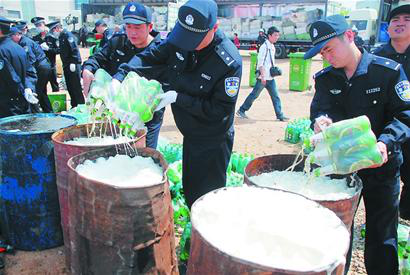 不光是假白酒、假啤酒,包括已經(jīng)過(guò)期的啤酒,也在集中銷毀之列。
