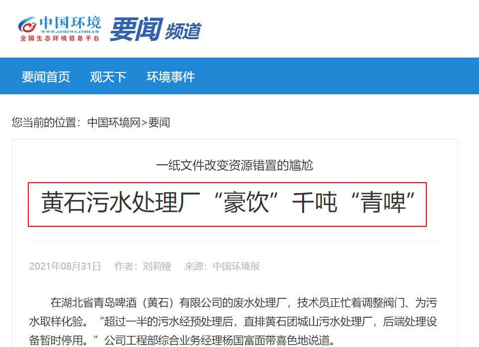 在湖北黃石、江蘇蘇州、常州,此前都有污水處理廠“喝啤酒”的案例。