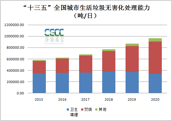 2.“十三五”全國城市生活垃圾無害化設施建設情況