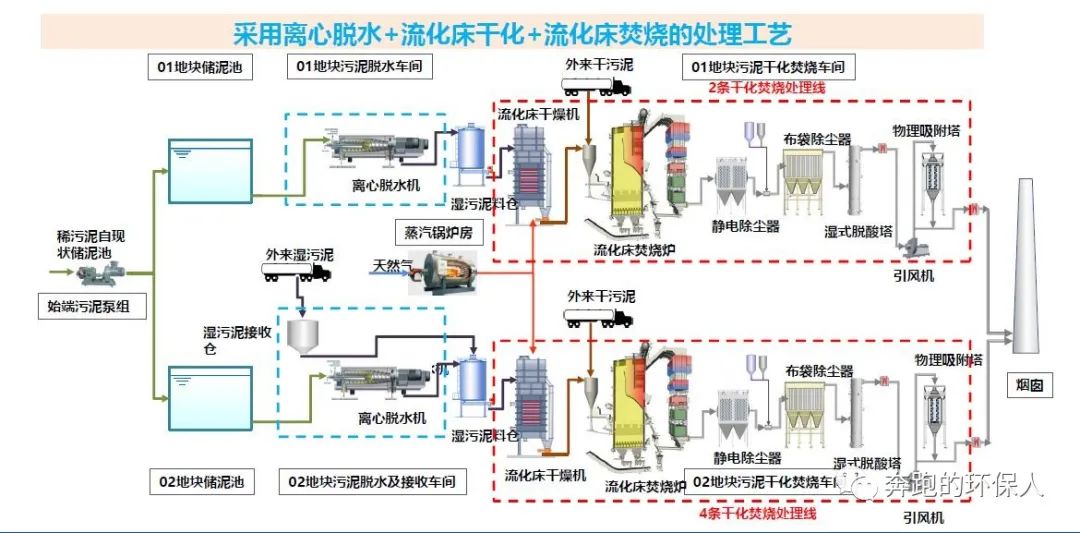 干化焚燒單元:槳葉式干化機(jī)+流化床焚燒爐