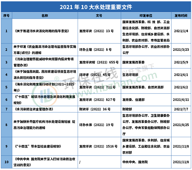 這些文件透露出什么重要信息?2022水處理工作該如何出手?來(lái)回顧2021的密集知識(shí)點(diǎn)。