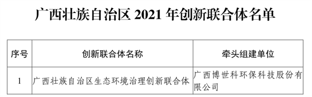 原標(biāo)題:廣西首批 | 博世科牽頭組建的“廣西壯族自治區(qū)生態(tài)環(huán)境治理創(chuàng)新聯(lián)合體”獲認(rèn)定