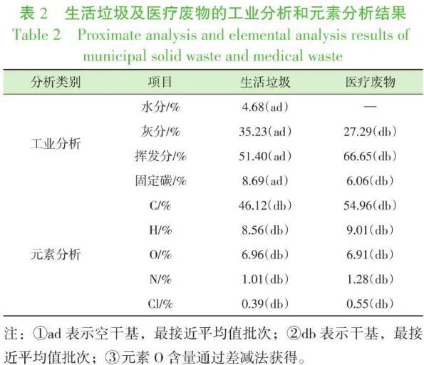 生活垃圾的采樣均按照CJ/T 313—2009生活垃圾采樣和分析方法進(jìn)行,取樣點在垃圾池。醫(yī)療廢物主要來自社康醫(yī)院垃圾池中一固定區(qū)域,在與生活垃圾混合前取樣,因試驗在新冠疫情期間進(jìn)行,為安全起見,所取的醫(yī)療廢物樣品先稱質(zhì)量后,再通過高壓蒸汽滅菌,然后再進(jìn)行分析。表1和表2給出了試驗期間某次取樣得到的醫(yī)療廢物和生活垃圾的組成與性質(zhì)。
