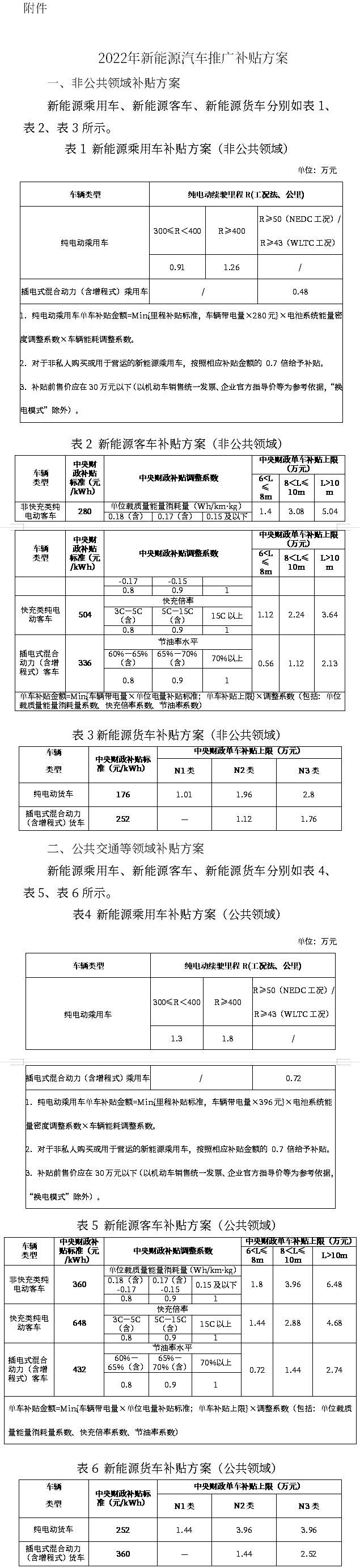 關(guān)于2022年新能源汽車(chē)推廣應(yīng)用財(cái)政補(bǔ)貼政策的通知