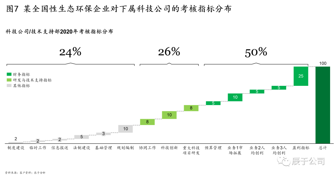 此外,對技術(shù)人員的考核也沒有根據(jù)這類人員的特點進行差異化管理,沿用老套的項目子公司考核思路,很難調(diào)動他們的積極性與創(chuàng)造性,更有甚者,背負太多財務(wù)指標(biāo)也讓這些技術(shù)人員不得不將精力放在短期業(yè)績的追求上(見圖7,為保護隱私,對數(shù)據(jù)進行了處理)。