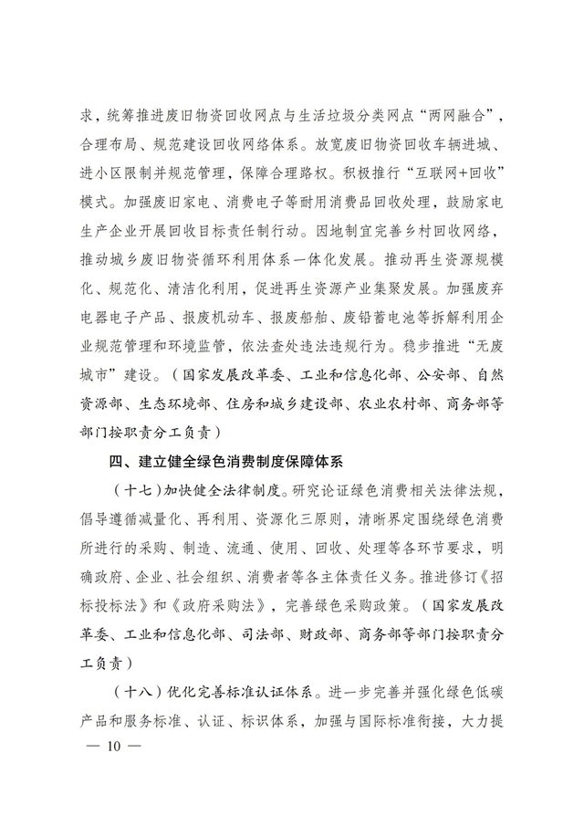 國家發(fā)展改革委等部門關于印發(fā)《促進綠色消費實施方案》的通知