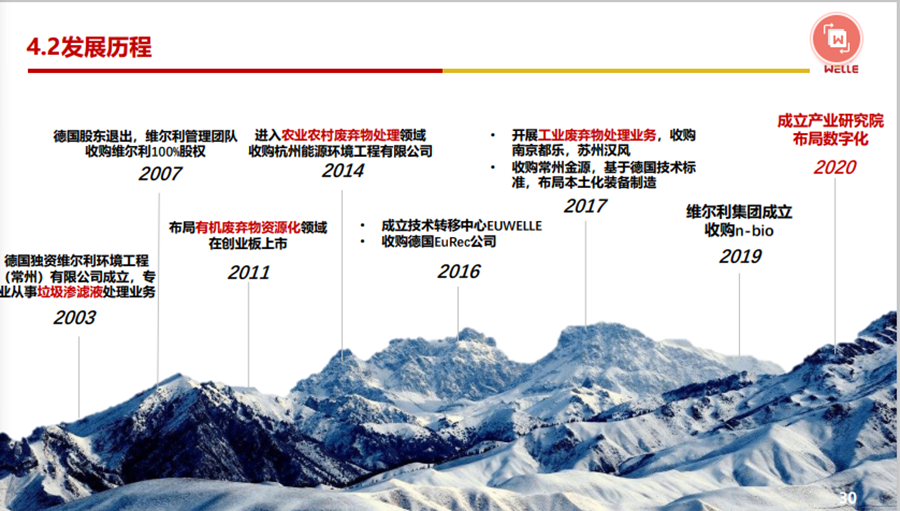 維爾利集團(tuán)(原江蘇維爾利環(huán)??萍脊煞萦邢薰荆?,2003年成立,2011年創(chuàng)業(yè)板上市,目前全球有六十多家分子公司及項(xiàng)目公司,板塊也是比較多元。發(fā)展也是源自于德國,維爾利曾經(jīng)是德國的全資子公司,到后來發(fā)展成國內(nèi)的一家上市公司。從技術(shù)這塊,我們也是相對比較創(chuàng)新。