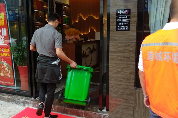 在夏港街道,港城環(huán)境以江南路為試點(diǎn)路段,廣泛開展上門宣傳;向試點(diǎn)路段的65家餐飲商戶逐一發(fā)放餐廚垃圾專用桶,并引導(dǎo)商戶愛護(hù)環(huán)境衛(wèi)生,自覺將垃圾分類投入到垃圾桶內(nèi)。此舉將從源頭有效推動(dòng)餐廚垃圾集中收集。
