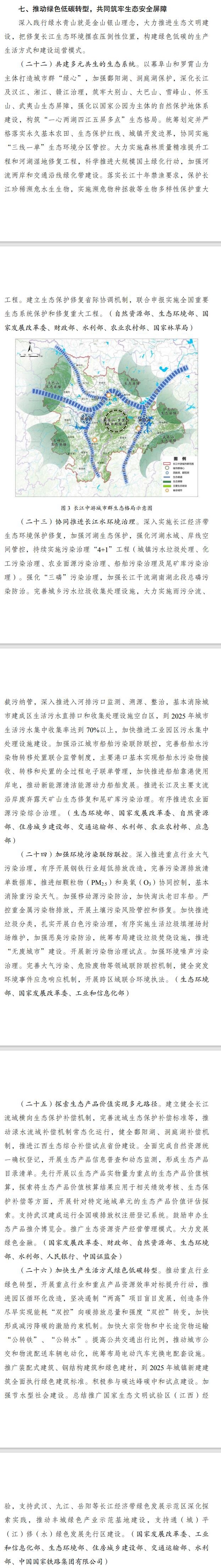 實(shí)施方案要求,優(yōu)化國土空間開發(fā)保護(hù)格局,推動(dòng)生態(tài)共保環(huán)境共治,筑牢長(zhǎng)江中游生態(tài)屏障,加快建立生態(tài)產(chǎn)品價(jià)值實(shí)現(xiàn)機(jī)制,著力改善城鄉(xiāng)人居環(huán)境,積極落實(shí)碳達(dá)峰碳中和目標(biāo)任務(wù),促進(jìn)長(zhǎng)江經(jīng)濟(jì)帶綠色發(fā)展。