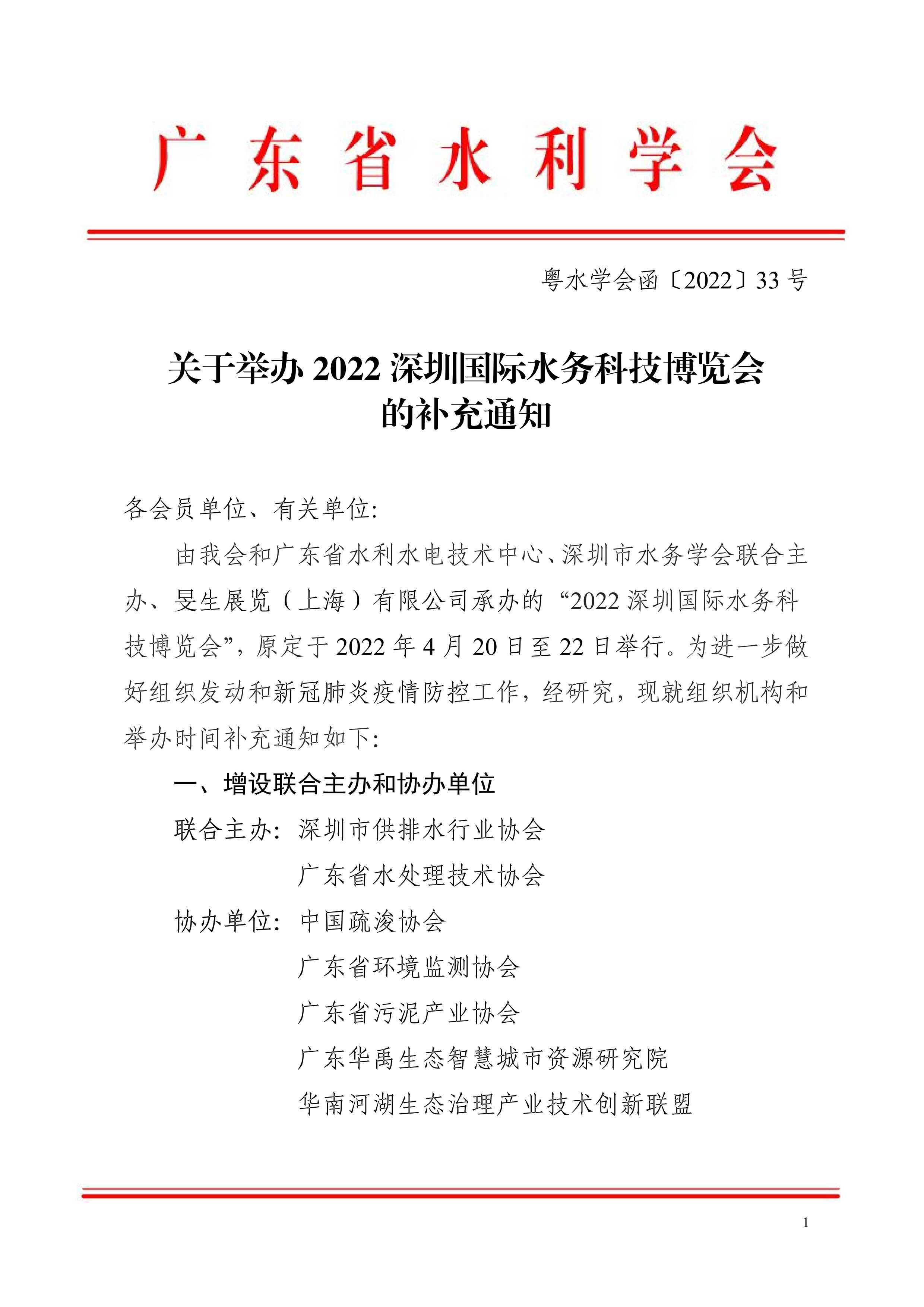 關(guān)于2022深圳國際水務(wù)科技博覽會補充通知