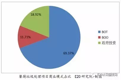 (2)運營模式不成熟。我國餐廚垃圾處理主要本著政府主導(dǎo)、企業(yè)參與的原則,投資模式目前主要有政府投資、BOT、BOO等。據(jù)E20研究院統(tǒng)計,目前在我國的餐廚垃圾處理項目中,主要以BOT模式為主。在已知的111個餐廚垃圾項目中,有69.37%的項目采用BOT模式運營。