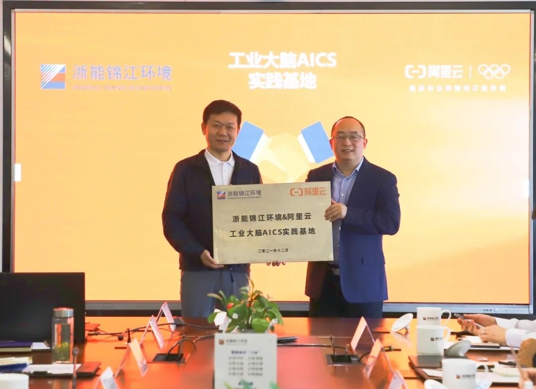 座談會后,浙能錦江環(huán)境&阿里云工業(yè)大腦AICS實踐基地授牌儀式隆重舉行,阿里云智能制造與能源電力技術總經理孔令西及項目相關負責人,浙能錦江環(huán)境常務副總經理王武忠、總工程師戚亮、副總經理鄂宏彪等出席儀式。