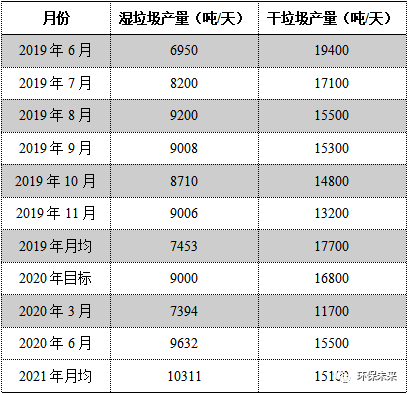 據(jù)上海市綠化市容局公布的數(shù)據(jù)顯示(表1所示),2019年7月,上海廚余(濕)垃圾分出量達(dá)到8200噸/天,較2018年年底增長了110%。2020年6月,上海廚余垃圾分出量達(dá)到9632噸/天,較2019年同期增長近40%,2021年濕垃圾產(chǎn)量平均已經(jīng)超過1萬噸/日,分類成效遠(yuǎn)遠(yuǎn)走在國內(nèi)前端。預(yù)計(jì)上海廚余垃圾分出總量的峰值可以達(dá)到11300噸/天,其中家庭廚余占6800噸/天,餐廚垃圾3000噸/天,其他濕垃圾1500噸/天。