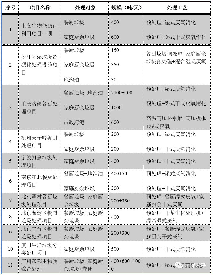 表2 國內(nèi)部分已建廚余垃圾處理設(shè)施和處理工藝統(tǒng)計(jì)表