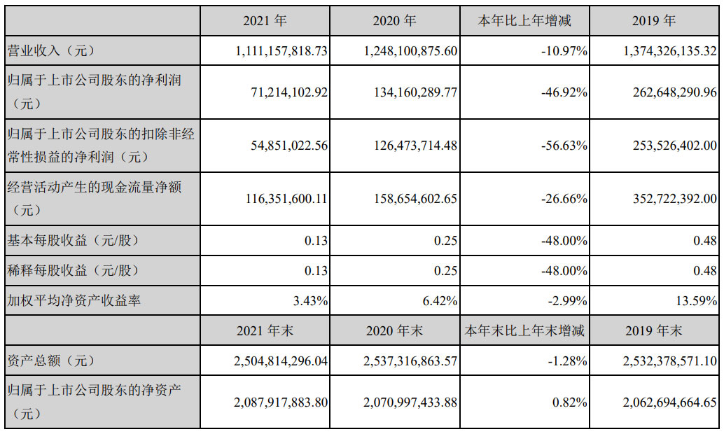 就在這樁交易官宣的同時(shí),4月28日,先河環(huán)保剛剛發(fā)布了2021年的年報(bào),報(bào)告期內(nèi),公司實(shí)現(xiàn)營業(yè)收入11.11億元,同比下降10.97%;實(shí)現(xiàn)歸屬于上市公司股東的凈利潤7121萬元,同比下降46.92%。