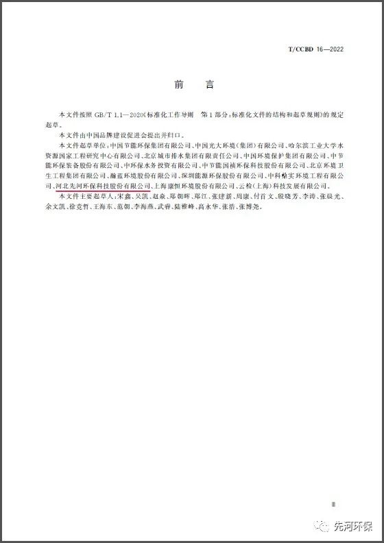 2022年5月1日,在中國品牌建設(shè)促進(jìn)會(huì)的指導(dǎo)下,由河北先河環(huán)保科技股份有限公司等15家企業(yè)共同參與并制定的《品牌價(jià)值評(píng)價(jià) 環(huán)境保護(hù)企業(yè)》團(tuán)體標(biāo)準(zhǔn)T/CCBD 16-2022于2022年5月1日正式發(fā)布實(shí)施。