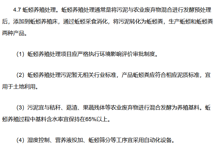 事實上,在去年9月印發(fā)的《四川省城鎮(zhèn)生活污水處理廠污泥處理處置技術(shù)指引(試行)》(以下簡稱“指引”)中,蚯蚓養(yǎng)殖處理是作為一個重要的污泥處理單元技術(shù)路線而存在的,指引中對蚯蚓養(yǎng)殖處理的概念和注意事項做出了詳細(xì)闡述。