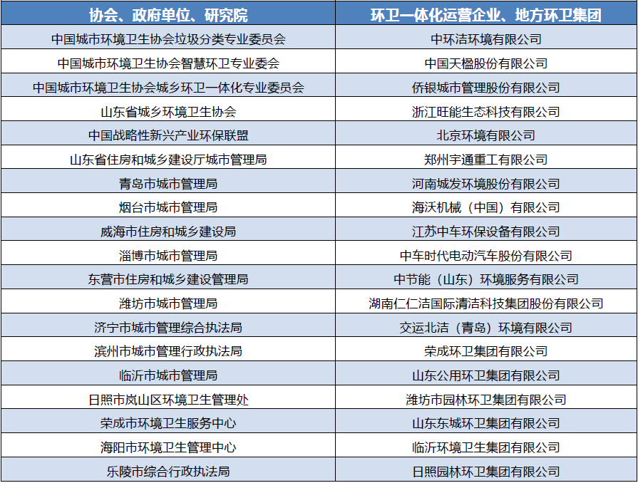邀請(qǐng)嘉賓:全國(guó)優(yōu)秀城市代表、山東省16地市政府主管單位,地方國(guó)資環(huán)衛(wèi)集團(tuán)、環(huán)衛(wèi)一體化運(yùn)營(yíng)企業(yè)高層領(lǐng)導(dǎo)