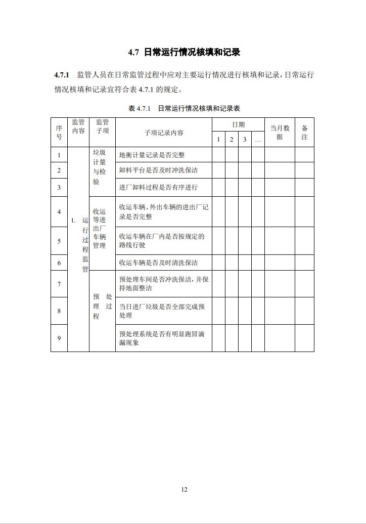 標(biāo)準(zhǔn)指出,監(jiān)管人員應(yīng)每月對(duì)處理廠的運(yùn)行進(jìn)行一次月考核,月考核結(jié)果可作為該月垃圾處理補(bǔ)貼費(fèi)撥付的參考依據(jù)。