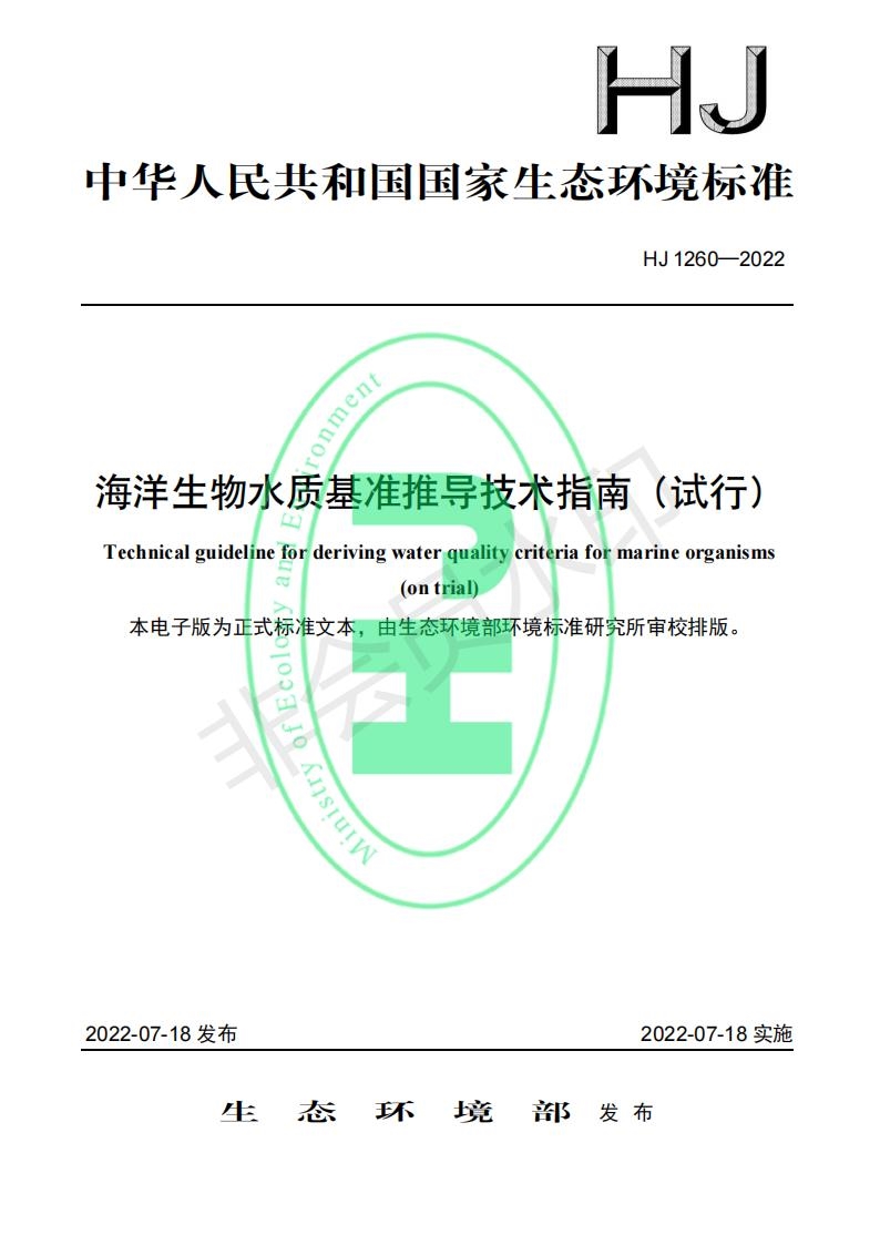 近日,生態(tài)環(huán)境部發(fā)布了《海洋生物水質(zhì)基準(zhǔn)推導(dǎo)技術(shù)指南(試行)》。本標(biāo)準(zhǔn)規(guī)定了海洋生物水質(zhì)基準(zhǔn)推導(dǎo)的一般性程序、方法與技術(shù)要求。本標(biāo)準(zhǔn)的附錄 A~附錄 E 為資料性附錄。本標(biāo)準(zhǔn)為首次發(fā)布。