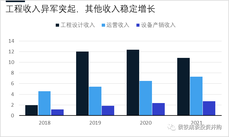 我們看到公司上市后收入利潤(rùn)有個(gè)大的波動(dòng),2018年上市后,2019業(yè)績(jī)爆發(fā)增長(zhǎng)。我們把業(yè)務(wù)拆分后,公司的成長(zhǎng)一目了然,2019年主要是工程收入大幅上漲,帶動(dòng)公司的業(yè)務(wù)收入迅速上升到20億以上。運(yùn)營(yíng)和設(shè)備收入,則穩(wěn)定增長(zhǎng)。