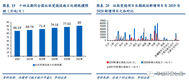 垃圾焚燒設(shè)施日處理規(guī)模超預(yù)期。根據(jù)2020城鄉(xiāng)統(tǒng)計年鑒的數(shù)據(jù),截至2020年底,我國垃圾焚燒設(shè)施的日處理規(guī)模(城鎮(zhèn)+縣城)合計已達到66.19萬噸/日,超額完成了十三五規(guī)劃58萬噸/日的目標。