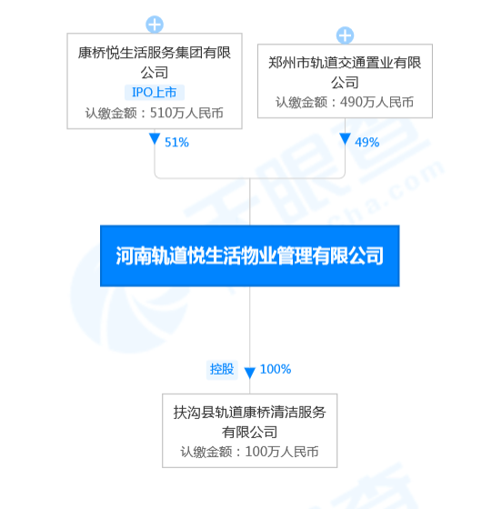 中標(biāo)供應(yīng)商河南軌道悅生活物業(yè)管理有限公司為“混合所有制企業(yè)”,成立于2021年11月,注冊資本1000萬元,由鄭州地鐵集團全資子公司鄭州市軌道交通置業(yè)有限公司(國有資本)與康橋悅生活服務(wù)集團有限公司(民營資本)合資組建,其中“民營資本”持股51%。