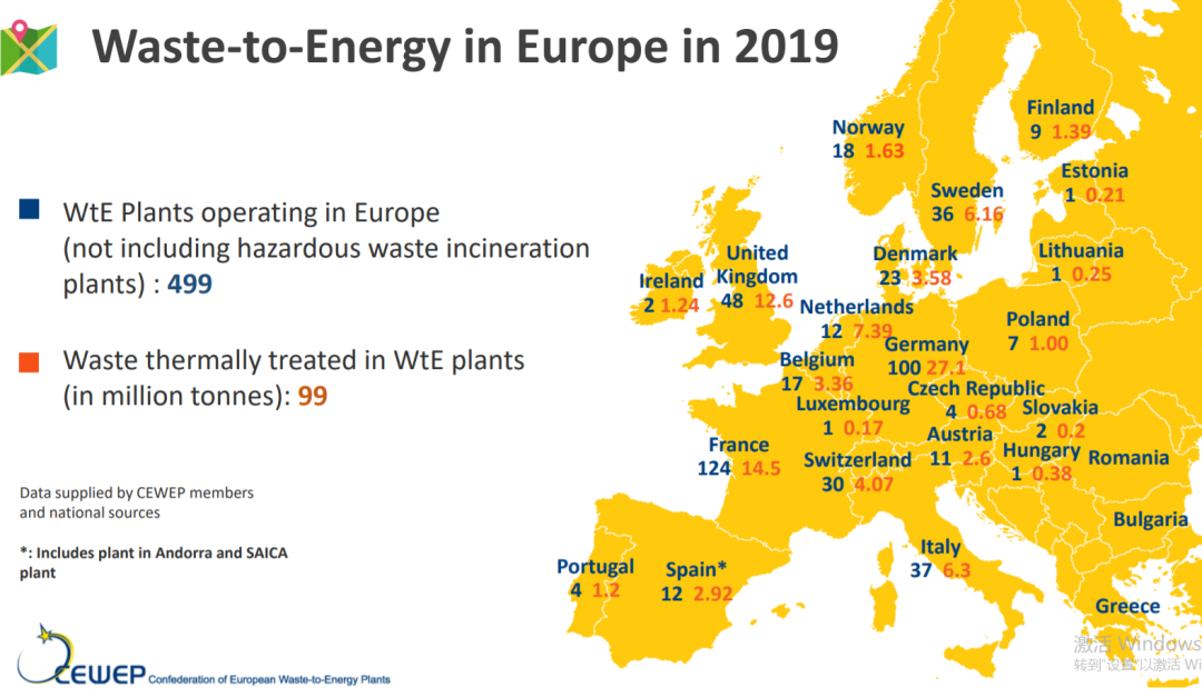 歐洲23國垃圾焚燒項目及產(chǎn)能分布表