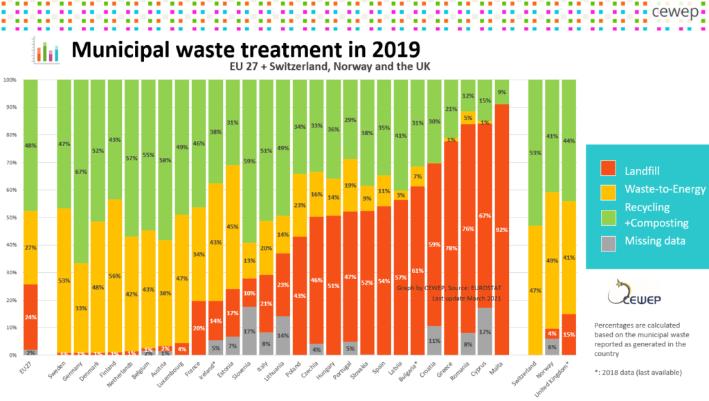 歐洲23國的垃圾焚燒占整個垃圾處理量的比例,已從2010年的22%,增長至2019年的27%。