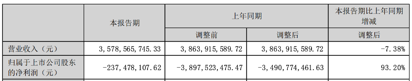 公司上半年營業(yè)收入為35.79億元,同比下降7.38%;實現(xiàn)歸屬于上市公司股東的凈利潤-2.37億元,同比增長93.20%。
