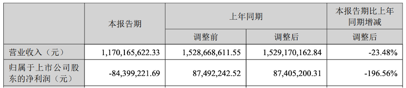 公司上半年營業(yè)收入為117,016.56萬元,同比下降23.48%;實現(xiàn)歸屬于上市公司普通股東的凈利潤-8,439.92萬元,同比下降196.56%。