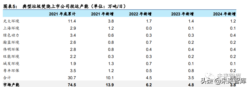 2022 年以來(lái),垃圾焚燒公司處于下行和震蕩通道,我們判斷系由于投資者擔(dān)憂市場(chǎng)趨于飽 和,增量規(guī)模下降,垃圾焚燒公司成長(zhǎng)空間下降。偉明環(huán)保股價(jià)連創(chuàng)新高,則是由于投資 者對(duì)于新能源材料業(yè)務(wù)項(xiàng)目進(jìn)度和增長(zhǎng)空間的預(yù)期提升。通過(guò)對(duì)垃圾焚燒公司在建和在手 產(chǎn)能數(shù)據(jù)的整理和分析,我們認(rèn)為行業(yè)頭部公司產(chǎn)能儲(chǔ)備充足,可保障近 2-3 年增長(zhǎng)無(wú)虞, 同時(shí)行業(yè)步入競(jìng)價(jià)時(shí)代,頭部公司運(yùn)營(yíng)管理和成本控制優(yōu)勢(shì)凸顯,高質(zhì)量增長(zhǎng)可期。(報(bào)告來(lái)源:未來(lái)智庫(kù))