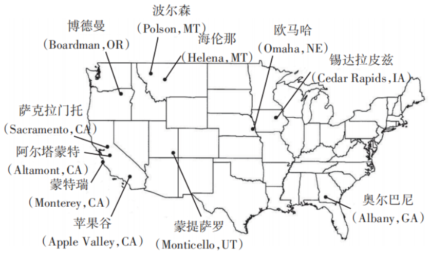 在對土質(zhì)覆蓋層進(jìn)行的現(xiàn)場試驗(yàn)研究中,最具代表性的項(xiàng)目當(dāng)屬US EPA資助的ACAP項(xiàng)目。該項(xiàng)目旨在評價(jià)替代型土質(zhì)覆蓋層的現(xiàn)場防滲性能,并為替代型土質(zhì)覆蓋層的設(shè)計(jì)、施工及后期維護(hù)提供必要的指導(dǎo)。ACAP項(xiàng)目于1998年啟動(dòng),先后在美國干旱、半干旱、半濕潤及濕潤地區(qū)的11個(gè)不同填埋場(圖7)建設(shè)了10個(gè)傳統(tǒng)阻斷型覆蓋層試驗(yàn)基地和14個(gè)替代型土質(zhì)覆蓋層現(xiàn)場試驗(yàn)基地。通過對試驗(yàn)基地的氣象條件、覆蓋層的徑流、側(cè)向?qū)?、土層存?chǔ)以及滲漏等指標(biāo)進(jìn)行長達(dá)1~3 a的監(jiān)測,獲得了各試驗(yàn)基地的水量平衡數(shù)據(jù),對比評估了替代型土質(zhì)覆蓋層的適用性。ACAP項(xiàng)目的結(jié)果表明:在北美的干旱、半干旱和半濕潤地區(qū),單層騰發(fā)式覆蓋層與毛細(xì)阻滯覆蓋層的防滲效果與傳統(tǒng)阻斷型覆蓋層相當(dāng),而且二者能夠避免土體開裂引發(fā)的大規(guī)模滲漏行為。由此得出,生態(tài)型土質(zhì)覆蓋層的防滲性能優(yōu)于傳統(tǒng)阻斷型覆蓋層。