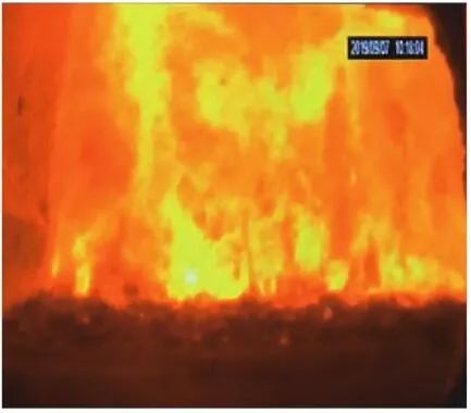 2)劣勢(shì)特性分析。一是參數(shù)單一。因垃圾焚燒行業(yè)爐型構(gòu)造和燃燒成分的特殊性,垃圾焚燒爐長(zhǎng)期采用的火焰探頭利用的是光學(xué)成像原理,運(yùn)行人員僅能通過(guò)觀察火焰形狀和位置來(lái)判斷焚燒爐工況,無(wú)法得到多維度參數(shù)。二是視角局限。爐膛火焰探頭通常位于焚燒爐后墻,安裝角度朝向爐內(nèi)成斜向上方向,與水平線夾角15°左右,探頭視場(chǎng)角通常>60°。以某大型列動(dòng)順推爐排焚燒爐為例,在此仰視角度下可以看到爐排燃燒段尾部、燃燼段前部?jī)擅婷黠@的火焰幕墻,由于火焰鋒面遮擋,很難觀察到燃燒段中前部的火焰狀況。
