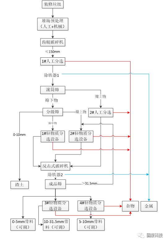 裝修垃圾預(yù)處理工藝路線(xiàn)