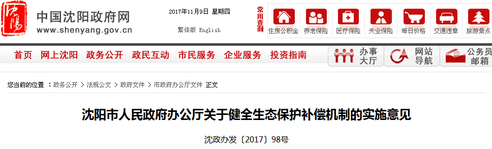 近日,沈陽(yáng)印發(fā)了《關(guān)于健全生態(tài)保護(hù)補(bǔ)償機(jī)制的實(shí)施意見(jiàn)》,意見(jiàn)指出實(shí)現(xiàn)我市森林、草原、濕地、荒漠、水流、耕地等重點(diǎn)領(lǐng)域和禁止開(kāi)發(fā)區(qū)域、重點(diǎn)生態(tài)功能區(qū)域、生態(tài)保護(hù)紅線(xiàn)等重要區(qū)域生態(tài)保護(hù)補(bǔ)償全覆蓋,補(bǔ)償水平與全市經(jīng)濟(jì)社會(huì)發(fā)展?fàn)顩r相適應(yīng),重點(diǎn)區(qū)域生態(tài)保護(hù)補(bǔ)償試點(diǎn)示范取得明顯進(jìn)展,多元化補(bǔ)償機(jī)制初步建立;通過(guò)實(shí)施生態(tài)環(huán)境保護(hù)與生態(tài)修復(fù)重大生態(tài)工程,促進(jìn)相關(guān)機(jī)制在生態(tài)保護(hù)補(bǔ)償重點(diǎn)領(lǐng)域與重要區(qū)域的有效實(shí)施?;窘ǔ煞衔沂袑?shí)際的生態(tài)保護(hù)補(bǔ)償制度體系,促進(jìn)形成綠色生產(chǎn)方式和生活方式。全文如下:
