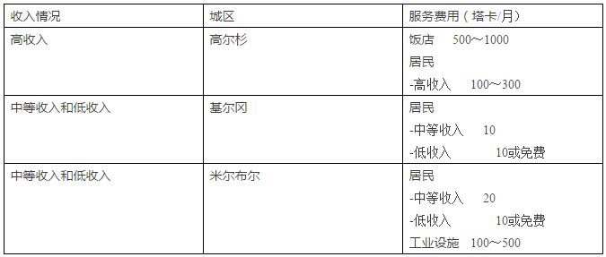 達(dá)卡市廢物收運(yùn)的市場化價(jià)格(1人民幣約合13塔卡)