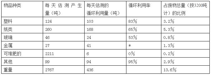 *由于數(shù)據(jù)采集時(shí),將市內(nèi)工廠對(duì)從市外運(yùn)送來的金屬進(jìn)行的循環(huán)利用計(jì)算在內(nèi),所以循環(huán)利用量高于金屬廢物的產(chǎn)生量。