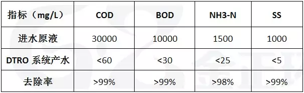 眾所周知,反滲透膜技術是一種常用的脫鹽技術。目前,適用于工業(yè)規(guī)模的反滲透膜,主要包括乙酸纖維素和聚酰胺膜,其鹽截留率為 99%以上。廢水通過物化、生物等方法使廢水達到排放標準。碟管式反滲透(DTRO)技術是一種高新反滲透技術,最早始于德國,相對于卷式反滲透其耐高壓、抗污染特點更加明顯,即使在高濁度、高SDI值、高鹽分、高COD的情況下,也能經(jīng)濟有效穩(wěn)定運行,更加適應高鹽廢水的處理。國內(nèi)主要應用于垃圾滲濾液與海水淡化、苦咸水淡化工程。DTRO雖然水處理效果卓越,但因DTRO膜組件主要依賴進口,成本相對較高,山東煙臺金正環(huán)保選用美國陶氏原材,采用德國一流加工設備實現(xiàn)了DTRO膜制造,明顯降低該技術運營成本,使該技術得以在國內(nèi)廣泛推廣。DTRO鹽截留率為 98%~99.8%。其他去除性能如表所示。