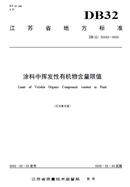 日前,江蘇省地方標(biāo)準(zhǔn)《涂料中揮發(fā)性有機(jī)物含量限值》(征求意見稿)已經(jīng)公布。征求意見稿對江蘇省涂料中VOCs含量限值做了詳細(xì)規(guī)定。