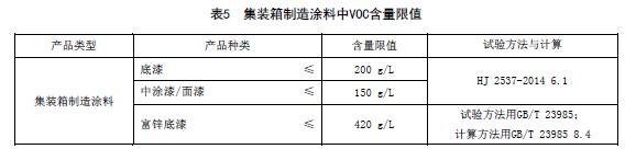 集裝箱制造涂料中VOC含量限值應(yīng)符合表5的規(guī)定。