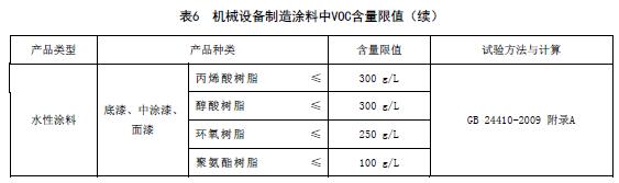 機(jī)械設(shè)備制造涂料中VOC含量限值應(yīng)符合表6的規(guī)定。