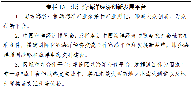 產(chǎn)業(yè)發(fā)展。加快推進(jìn)海洋經(jīng)濟(jì)創(chuàng)新發(fā)展示范城市及海洋經(jīng)濟(jì)示范區(qū)建設(shè)。推動(dòng)鋼鐵、石化產(chǎn)業(yè)及其園區(qū)發(fā)展,建設(shè)東海島高端臨?,F(xiàn)代制造業(yè)集群;推動(dòng)海洋工程裝備制造和海洋生物醫(yī)藥等海洋產(chǎn)業(yè)示范基地發(fā)展以及物流園區(qū)和產(chǎn)學(xué)研合作園區(qū)建設(shè);發(fā)揮漁業(yè)資源優(yōu)勢(shì),發(fā)展深加工漁業(yè),推動(dòng)遠(yuǎn)洋漁業(yè)基地建設(shè);對(duì)接北部灣地區(qū)和海南國(guó)際旅游島,共同打造粵桂瓊濱海旅游“金三角”,將其建設(shè)成為具有國(guó)際影響的休閑度假旅游目的地。在新寮群島、外羅水道、徐聞等海域布局海上風(fēng)電,推動(dòng)海上風(fēng)電等新能源產(chǎn)業(yè)發(fā)展。