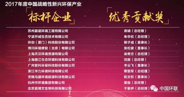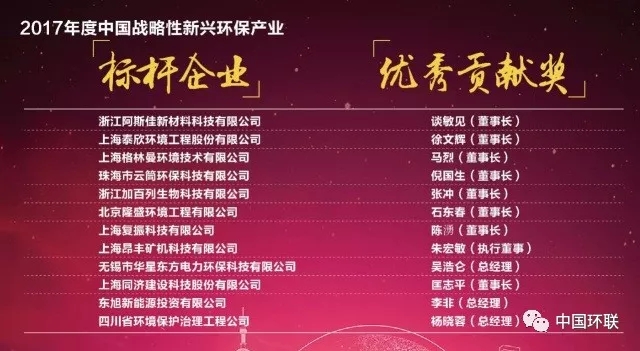 2017年度中國戰(zhàn)略性新興環(huán)保產(chǎn)業(yè)標(biāo)桿企業(yè)與優(yōu)秀貢獻(xiàn)獎