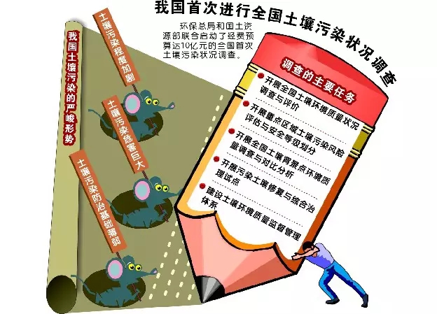 今年4月17日發(fā)布的《全國土壤污染狀況調(diào)查公報(bào)》顯示:全國土壤環(huán)境狀況總體不容樂觀,部分地區(qū)土壤污染較重,耕地土壤環(huán)境質(zhì)量堪憂,工礦業(yè)廢棄地土壤環(huán)境問題突出,全國土壤污染超標(biāo)率達(dá)16.1%。污染類型以無機(jī)污染物為主,南方土壤污染重于北方,長三角、珠三角、東北老工業(yè)基地等部分區(qū)域土壤污染問題較為突出,西南、中南地區(qū)土壤重金屬超標(biāo)范圍較大。總體上呈現(xiàn)出新老污染并存、無機(jī)有機(jī)復(fù)合、超標(biāo)范圍廣闊的嚴(yán)峻局面,因此從國家層面重視土壤污染問題、啟動(dòng)土壤污染修復(fù)已經(jīng)刻不容緩。