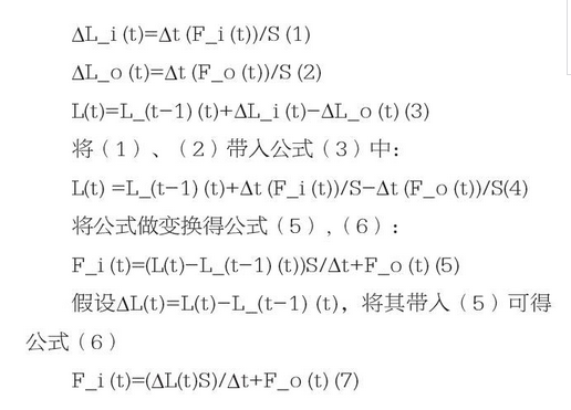 我們假設(shè)t時刻來水流量為Fi(t),集水池的液位就為L(t),S為集水池的底面積,膜進(jìn)水量Fo(t),ΔL_i(t)為來水液位增量,L_(t-1)(t)為t-1時的液位,ΔL_o(t)為超濾系統(tǒng)處理產(chǎn)量對業(yè)務(wù)液位增量??傻弥?/p>
